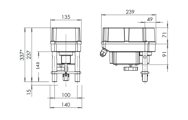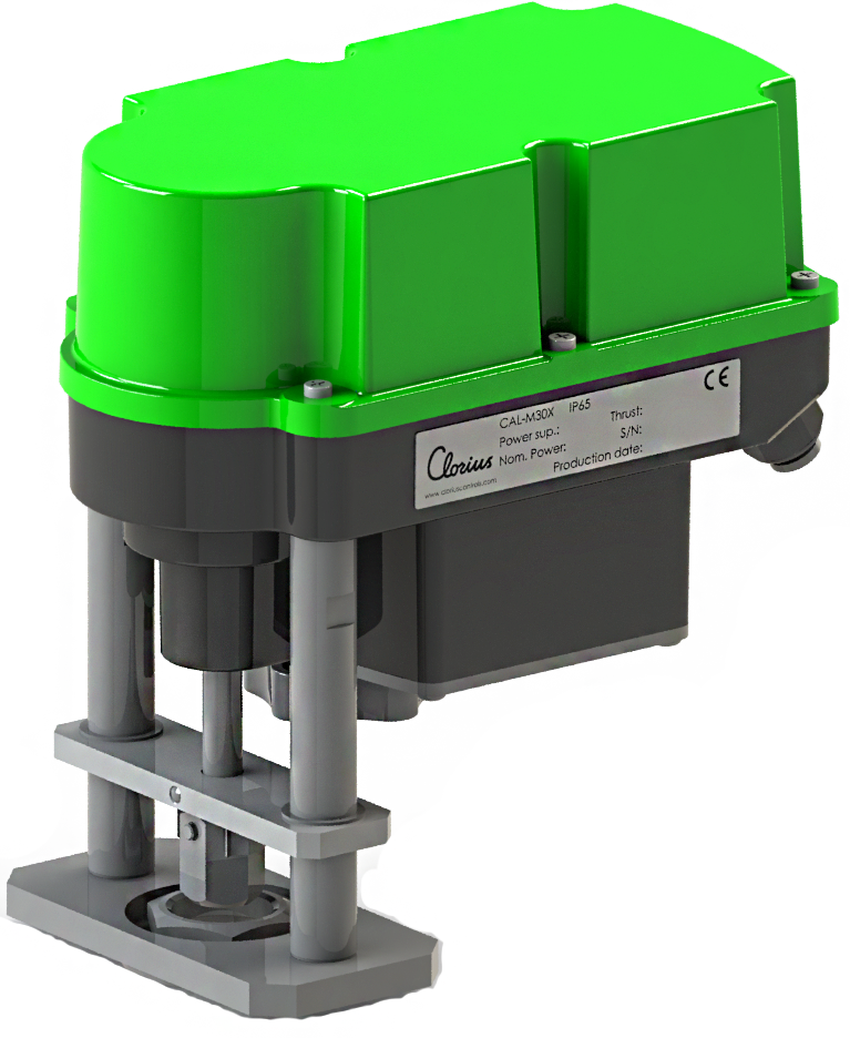 The main applications are heating, cooling, ventilation and industrial systems where the medium is water, steam or oil. The actuator is designed to be used with Clorius 2 and 3-way linear control valves.